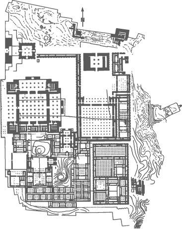 در دو طرف خیابان دیوارهای خشتی قطوری قرار دارند که در طول آنها و به فاصله های هفت متر طاقچه¬هایی (گوشواره) تعبیه کردهاند که احتمالا محل استقرار سربازان و افسران گارد به هنگام تشریفات بوده است. دیوار سمت راست (جنوبی) دیوار اطاقهایی است که حیاط آپادانا را از خیابان سپاهیان جدا میکند که احتمالا محل استقرار نگهبانان کاخ بوده است.
