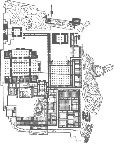 این کاخ که کاخ اختصاصی خشیارشا بوده، بر بلندترین بخش تختگاه تخت¬جمشید بنا شده و مشتمل است بر یک تالار 36 ستونی در مرکز، یک ایوان 12 ستونی در شمال، شماری اتاق در بخش¬های شرقی و غربی و یک ایوان باریک در ضلع جنوبی، که با دو راه¬پله به کاخ ملکه (موزه فعلی) ارتباط می¬یابد.